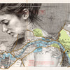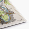 Ink drawing crosshatched over an original Stanford's map of the River Thames, UK (Chertsey to Richmond section)