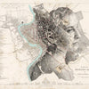Ink drawing crosshatched over an original 1830 map of Rome, Italy
